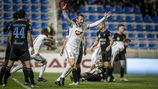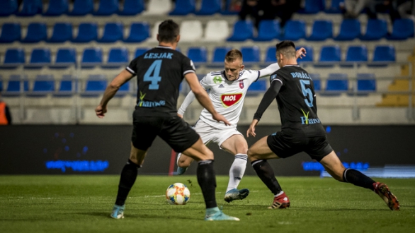 A 12. percben szép baloldali támadás után Petrjak lőtt kapura 12 méterről, de Demjén a helyén volt. Négy perccel később 18-ról Hodzic lőtt, de a középre tartó labdát is védte Demjén. A 18. percben Nego jobb oldali beadását lőtte kapura a tizenhatoson belülről Milanov, de sajnos ez a labda is a kapu közepe felé ment, így a hazai kapus ezt is hárítani tudta. 24 perce tartott a találkozó, amikor Kocsis indításával Radó indult meg a baloldalon, egy csel után kapura lőtt tíz méterről, Kovácsik hatalmasat védett. A 25. percben már hálóőrünk is tehetetlen volt, miután Mitrovics passzát Bobál Gergely kíméletlenül belőtte a bal alsó sarokba (2-0).