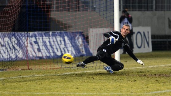 Szakály Dénes kegyetlenül bevarrta a büntetőt, Tujvelnek esélye sem volt a védésre.