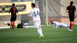 Feczesin adott kiváló labdát Rudolfnak, aki átvette azt, majd 14 méterről, éles szögből a hosszú kapufát találta el. Szép akció volt!