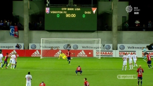 És még csak ezután jött a dráma! A 95. percben Henty próbált meg egy megkerülős cselt Szatmári mellett a tizenhatoson belül. A debreceni védő lerántotta csatárunkat, Kassai Viktor pedig tizenegyest adott. A büntetőt Lazovics magabiztosan rúgta a bal alsóba, majd a játékvezető véget is vetett az összecsapásnak, amit így egy 97. perces góllal nyert meg a Vidi!