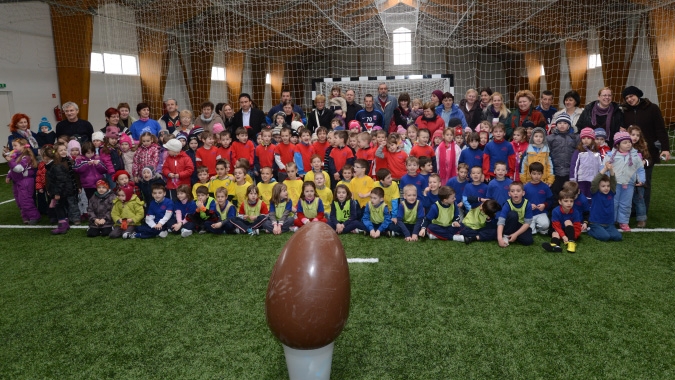 Összesen öt óvoda - a Hosszúsétatéri, a Tóvárosi, a Brunswick, a Gyöngyvirág és a Pozsonyi úti - gyerkőcei vettek részt a Videoton FC Ovifoci elnevezésű programjának csütörtök délelőtti foglalkozásán. A nemrégiben a Magyar Arany Érdemkereszttel kitüntetett Kiss Imre vezetésével és klubunk utánpótlás edzőinek közreműködésével az óvodások 10 perces meccseket játszottak egymás között, két forduló között pedig összeálltak egy közös fotóra kísérőikkel és a Vidi húsvéti ajándékával, egy óriási csokitojással.