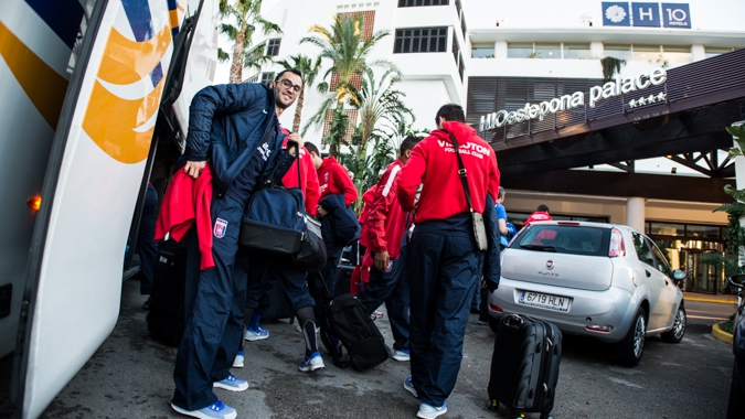 Reggel 7:30-kor indult el autóbusszal a Vidi a Sóstói Stadionból a bécsi repülőtérre. Ott játékosaink felszálltak az Air Berlin 11:20-kor induló járatára, amely bő másfél órával később Mallorcán landolt. A közkedvelt üdülőhelyen nem kellett sokat időzni, hiszen 14:50-kor már ismét a magasba emelkedett a csapatunkat szállító repülőgép, mely aztán a terveknek megfelelően 16:30-kor landolt is Malagán. Ezúttal tehát nem kellett olyan izgalmakat átélnie játékosainknak, mint tavaly, amikor Párizsban lekésték a csatlakozást, sőt ezúttal mindenki csomagja rendben megérkezett a spanyolországi edzőtáborba.
