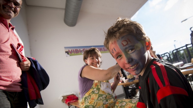 Ezúttal is kérhetnek a gyerekek piros-kék arcfestést - természetesen csak abban az esetben, ha a szülők is áldásukat adják erre!