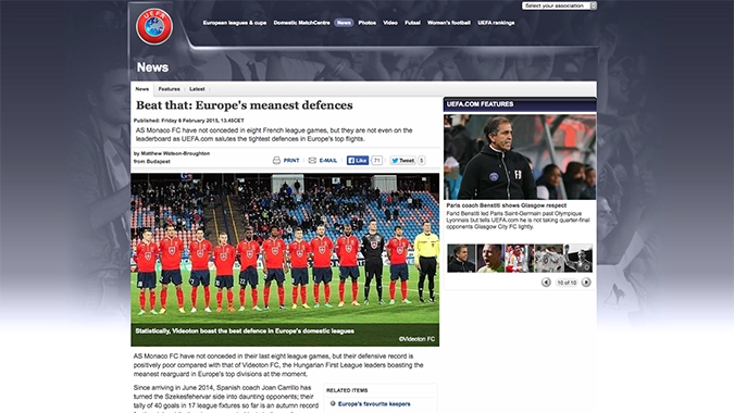 „A Monaco nyolc bajnoki óta nem kapott gólt, de ez a sorozat is elmarad a Videotonétól, jelenleg a magyar bajnokságot vezető csapaté a leghatékonyabb védelem Európában" – ezzel a megállapítással kezdi a cikket az Európai Labdarúgó-szövetség honlapja.