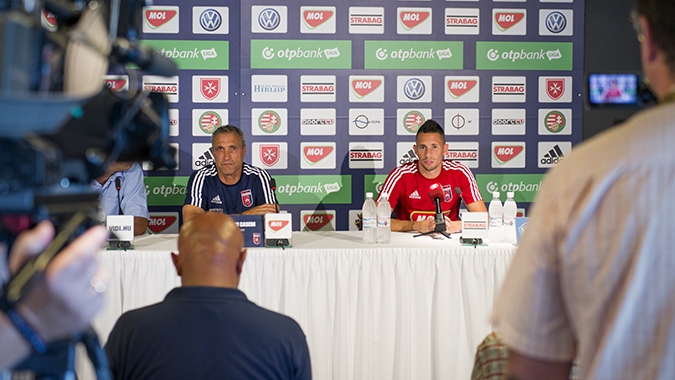 Szerdán 20.30-tól fogadja csapatunk a walesi The New Saints együttesét a Sóstói Stadionban. A Bajnokok Ligája-selejtező visszavágó mérkőzése előtt, kedden 17.00-tól sajtótájékoztató keretében kérdezhettek az újságírók Bernard Casoni vezetőedzőtől és Gyurcsó Ádámtól. 17.30-tól a meccs előtti utolsó edzésen vettek részt a játékosok.