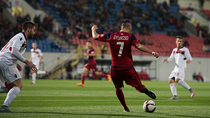 Szolnoki beadását követően a labda Gyurcsó elé pattant az egyik vendég védőről, középpályásunk pedig 16 méterről okosan a bal alsóba lőtte a labdát!