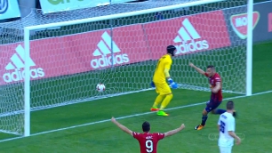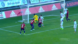 Zsótér szöktette a bal szélen Nagy Dánielt, aki befelé cselezett, majd 17 méterről kilőtte a bal sarkot!