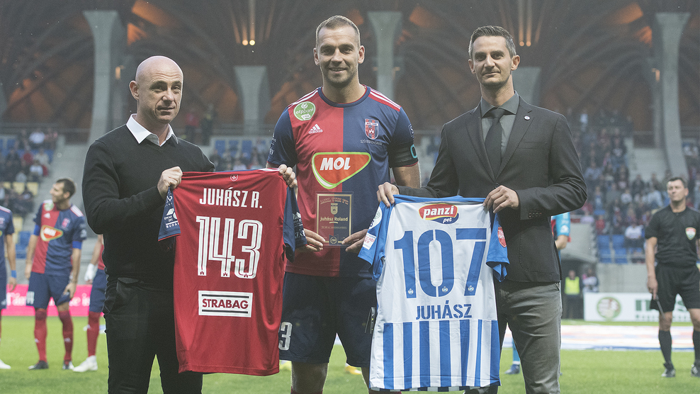 A csütörtök esti, Chelsea elleni londoni EL-mérkőzés után csapatunk ezúttal Felcsúton lépett pályára, ellenfelünk pedig az idén az élvonalba visszajutó, a mérkőzés előtt a 6. helyen álló MTK volt. A kezdő sípszó előtt Tomas Tujvelt és Juhász Rolandot is köszöntötték. Kapusunk a DVTK ellen játszotta 100. NB I-es meccsét, míg Juhász Roland a Mezőkövesd ellen 250. alkalommal szerepelt a magyar élvonalban. Csapatkapitányunk két emlékmezt is kapott, hiszen az MTK-ban 107, míg a Vidiben 143 bajnokit játszott, így természetesen ez a két szám szerepelt a mezeken.