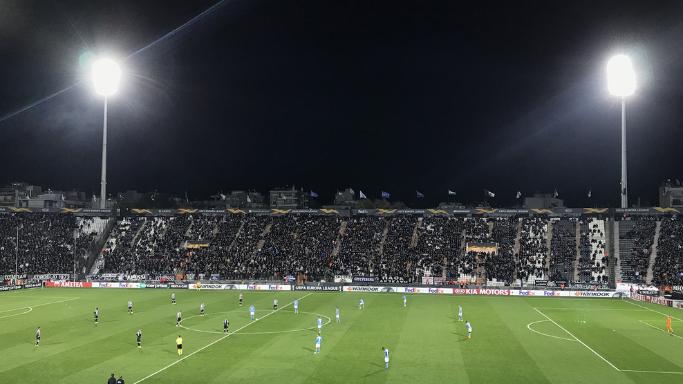 Az Európa Liga csoportkörének harmadik mérkőzésén Szalonikben lépett pályára csapatunk. Nagyjából 22 ezer néző előtt kezdődött az összecsapás, a vendégszektorban 100 Vidi-szurkoló foglalt helyet. A PAOK szokásos hazai szerelésében, fekete-fehérben lépett pályára, mi kék mezben, fehér nadrágban és kék sportszárban, azaz az idei harmadik számú garnitúránkban.