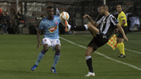 Az első izgalmas szituációra a 7. percig kellett várni, amikor egy hátratett labdát Kovácsik egészen a gólvonalig engedett, és az utolsó pillanatban rúgta el a letámadó Karelis elől. A 12. percben váratlanul megszereztük a vezetést: egy bedobás után Nego ment le az alapvonalig, laposan középre gurított, az érkező Huszti pedig közelről a kapuba passzolt (0-1).