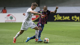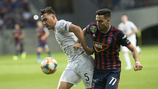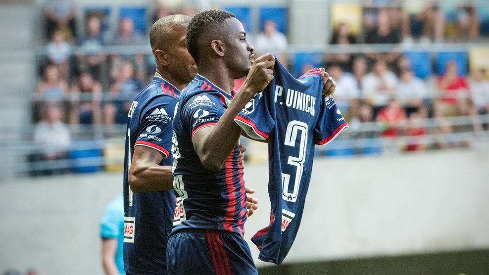 Ragyogóan kezdtük a meccset, hiszen már az 5. percben megszereztük a vezetést, miután Huszti szögletét Stopira fejelte a vendégek kapujába (1-0). Védőnk, akárcsak 2017 augusztusában, amikor gólt szerzett a Ferencváros ellen, ezúttal is a kispadunkhoz szaladt, és a kispadról Vinícius mezét elkérte, majd azt a magasba emelte - így kívánt jobbulást csapattársának és barátjának, a sérüléssel bajlódó Vininek.