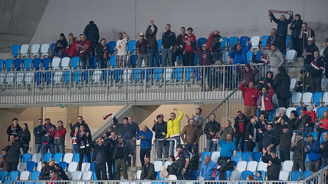 Az Új Hidegkuti Nándor Stadion vendégszektorai a V1, V2, V3 és V4.