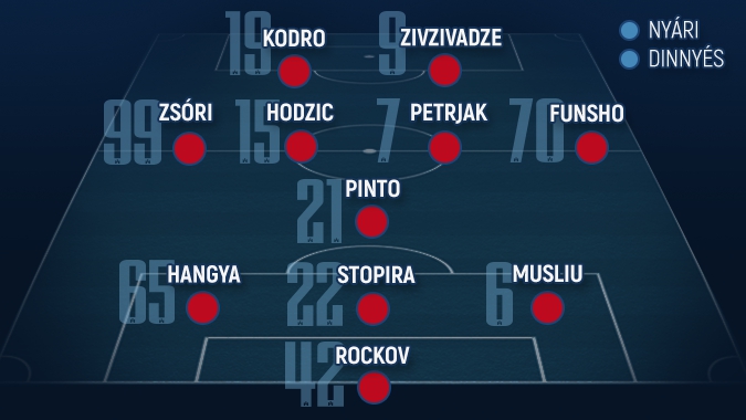 A "kezdő": Rockov - Musliu, Stopira, Hangya - Pinto - Funsho, Petrjak, Hodzic, Zsóri - Zivzivadze, Kodro
