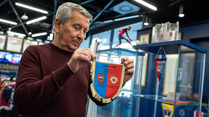 A MOL Fehérvár FC - DVSC bajnoki mérkőzés előtt debütált a Vidi Múzeumban az az exkluzív, időszaki kiállítás, melynek keretében 34 darab, igazi ritkaságnak számító asztali vidis zászlókból álló gyűjteményt lehet megtekinteni. Valamennyi vidis zászló a Vidi Múzeum kurátorának, Tauser Zoltánnak a tulajdonában áll. Szurkolóinkat a múzeumban természetesen az időszaki kiállítás első napján is klubunk legendás támadója, Szabó József, valamint a 40 esztendeje a Vidinél dolgozó Németh János (képünkön) kalauzolta végig.