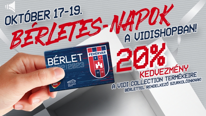 Leghűségesebb szurkolóinknak ismét egy külön akcióval szeretnénk megköszönni, hogy bérletet vásároltak, ezúttal október 17-19. között várjuk őket a Bérletes-napok keretein belül a MOL Aréna Sóstóban található VidiShopban!