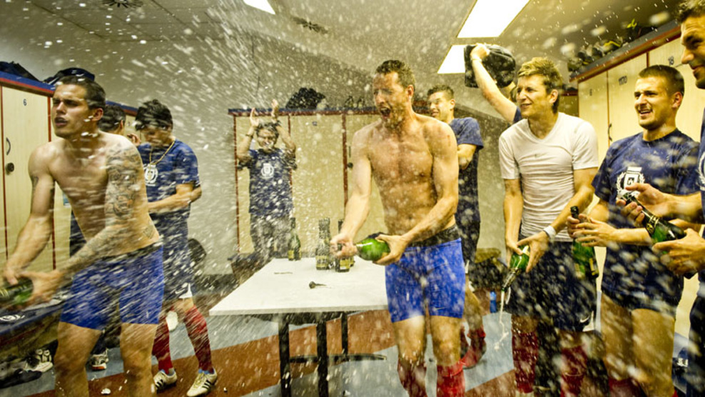 A bajnoki cím ünneplése az öltözőben - 2011