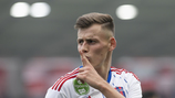 34.Egy szélről érkező beadást fejelt Serafimov kapu fölé hat méterről.