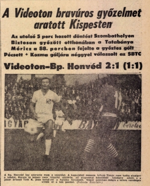 Ugyancsak Tímárral kezdődött csapatunk összeállítása 1968. augusztus 11-én, amikor először játszottunk NB I-es bajnokit a Bozsik Stadionban. Az első kispesti szereplésünk nagyon jól sikerült, hiszen Kovács I László és Balogh Károly góljaival 2-1-re nyertünk a fővárosban.
