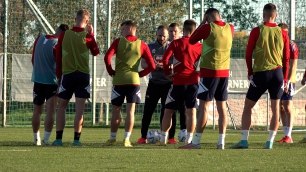 -35.A két csapat játékosai elkezdték a bemelegítést.