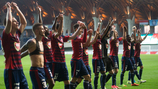 A 4. percben a vendégek kerültek helyzetbe, Jancsó adott szép passzt Williamsnak, aki egyedül vezethette a labdát Kovácsikra, majd 14 méterről kapura lőtt, kapusunk azonban lábbal hatalmasat védett! A 10. percben Hadzic elé pattant a labda, aki 18 méterről, gondolkodás nélkül lőtt kapásból a kapu mellé. A 17. percben megszereztük a vezetést: Szolnoki vette célba Király kapuját, lövése egy védőről Nego elé pattant, aki egy nagyon szép csel után, 14 méterről a bal alsóba lőtt (1-0).