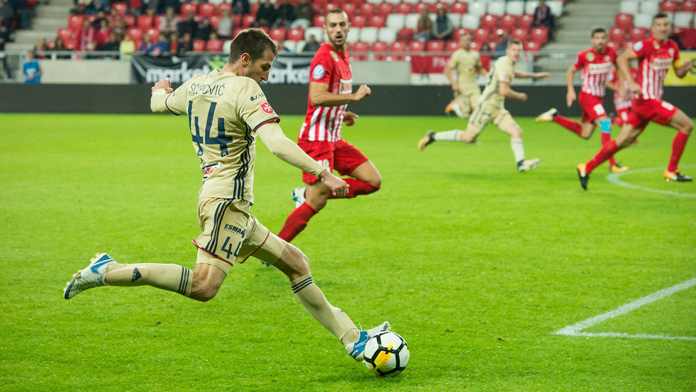 Egyenlítettünk! Suljic adott be jobbról, Scsepovics 6 méterről erősen lőtt a felső lécre, Hadzic pedig érkezett és közelről az üres kapu előtt nem hibázott! 1-1!