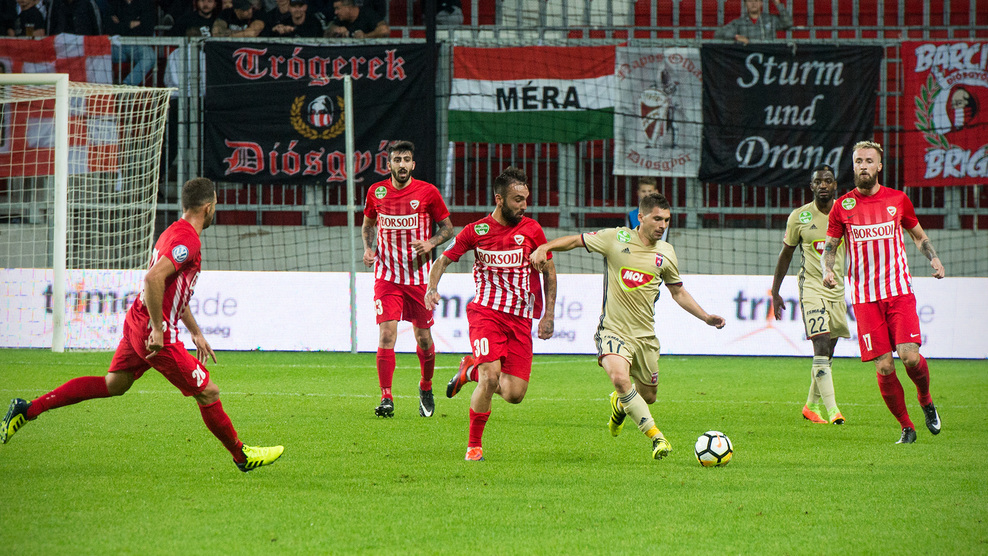 Meglehetősen csendesen csordogált az összecsapás, amelynek első negyedórájában a DVTK próbálkozott többet és a 17. percben a vezetést is megszerezte: Ugrai Roland a szélről tört be egy gyorsan elvégzett szabadrúgást követően, majd 20 méterről lőtt, labdája a felső lécről a gólvonal mögé pattant (1-0).